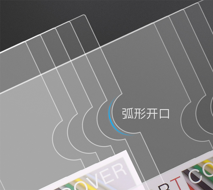 市面上的普通文件夾,普遍采用正面塑料覆蓋設(shè)計(jì),當(dāng)需要翻閱文件資料時(shí),會(huì)導(dǎo)致翻頁極為繁瑣。而可得優(yōu)10色A4文件夾,在可以保護(hù)文件資料的同時(shí),也采用人性化設(shè)計(jì),依據(jù)人們從右往左翻頁的習(xí)慣,在文件夾設(shè)計(jì)了弧形開口,一面保護(hù)一面翻閱。翻閱壓痕設(shè)計(jì),讓你翻閱無障礙。