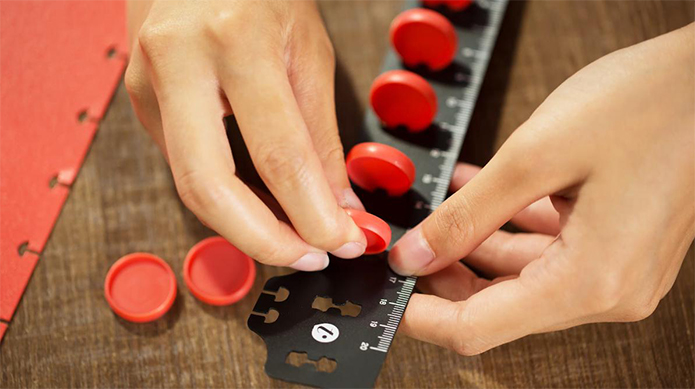 組合成一個完整的TO NOTE筆記本,一定少不了這些小零件的參與——TO NOTE治具和TO NOTE裝訂環(huán)。裝訂環(huán)配合著治具,再加上任意想要裝訂的紙張即可完成裝訂。具體使用方法是:1.先將環(huán)依序放入治具;2.封底套入環(huán);3.將內(nèi)頁套入環(huán);4.封面套入環(huán);5.拆下治具。治具可當書簽或量具使用,裝訂環(huán)可隨意搭配個數(shù)和顏色。多種功能,多樣選擇,讓你的筆記本更具特色。