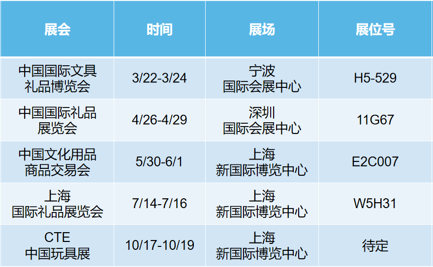 可得優(yōu)今年預(yù)計(jì)參與展會(huì)及展期