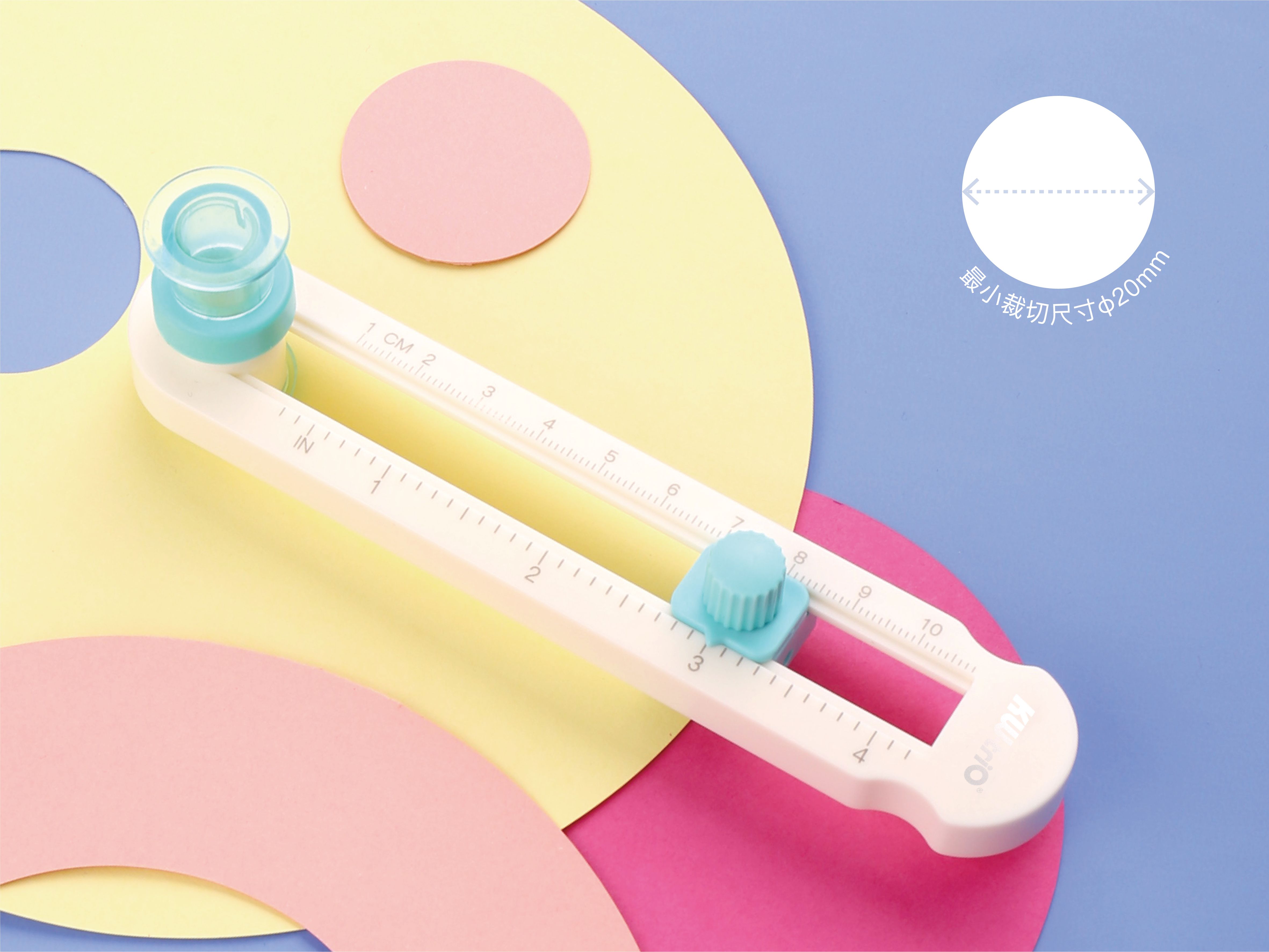 瞄準(zhǔn)年輕手作族群的迷你切圓刀將于今年中亮相,1cm-10cm的小型裁切半徑,更符合國(guó)內(nèi)創(chuàng)作玩家的常見作品尺寸。定位采用吸盤設(shè)計(jì),在保證了穩(wěn)定性的同時(shí)也不會(huì)劃傷紙面,并帶有中心點(diǎn)可視窗口設(shè)計(jì),能更有效率的裁切同心圓及圓環(huán),操作十分方便。