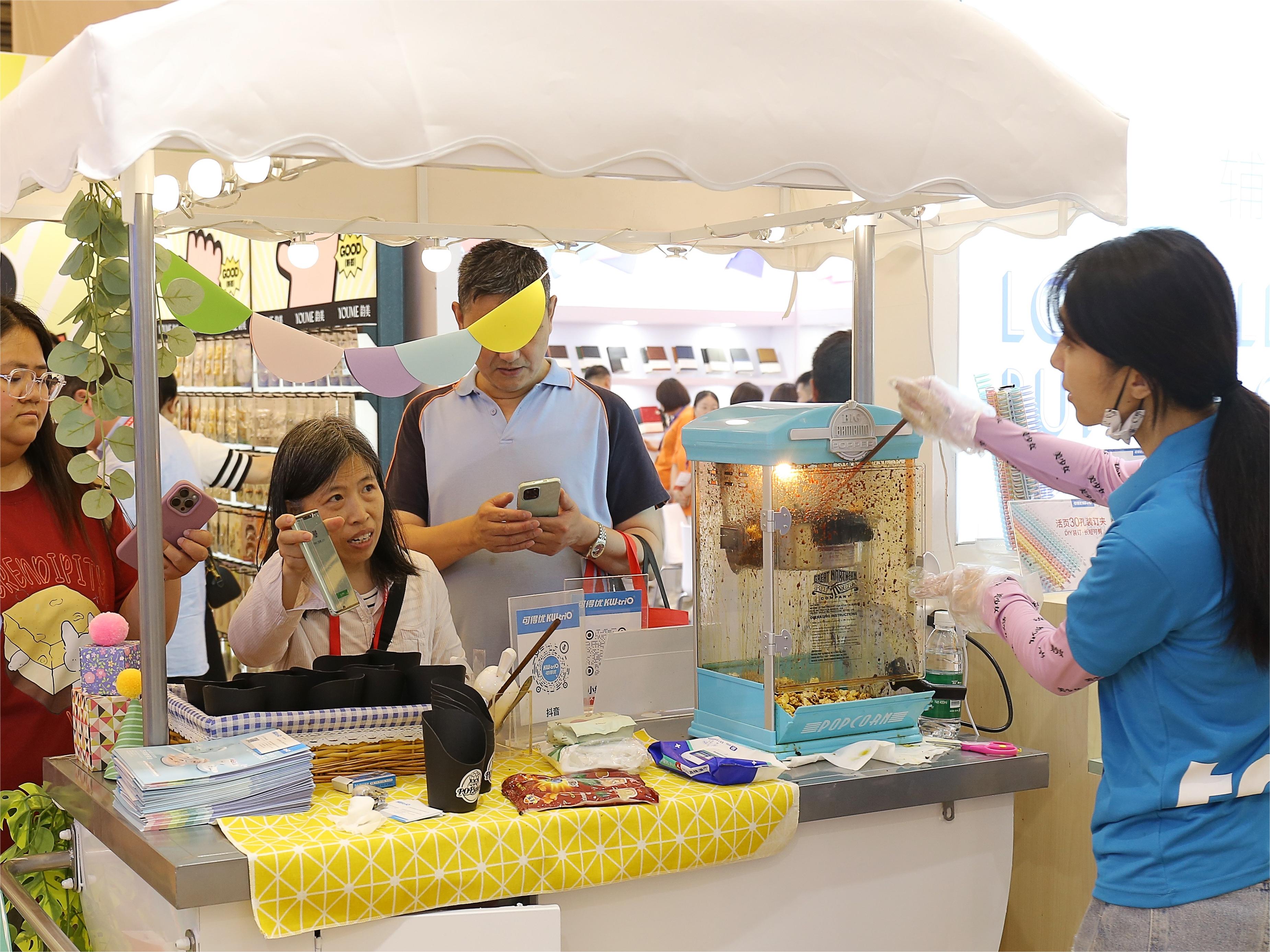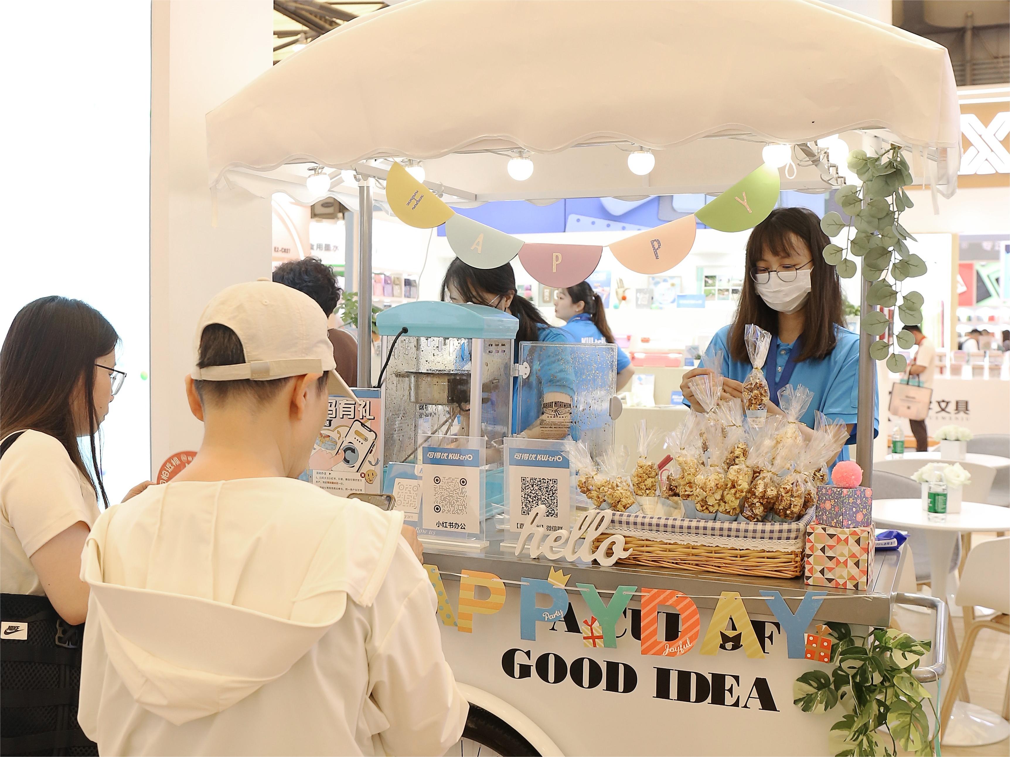 - 可得優(yōu)于展位舉辦拍照打卡留念贈(zèng)禮、關(guān)注領(lǐng)爆米花等活動(dòng),讓可得優(yōu)的愛(ài)好者們能在共同體驗(yàn)可得優(yōu)文具新品和精彩活動(dòng)中,暢享展會(huì)樂(lè)趣。