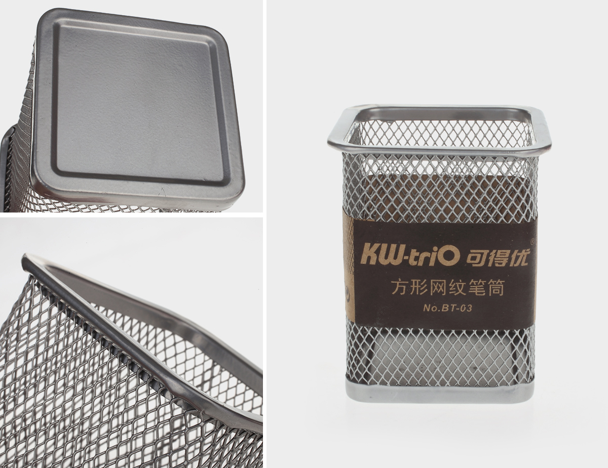 可得優(yōu)方形沖孔金屬筆筒,烤漆表面平滑防銹經(jīng)久耐用,編織鐵網(wǎng)烤漆包邊,
