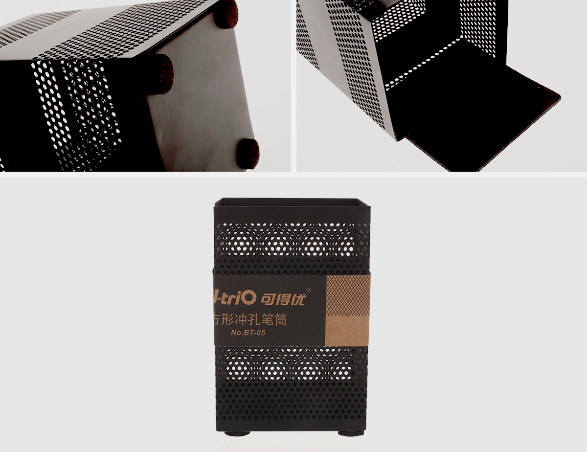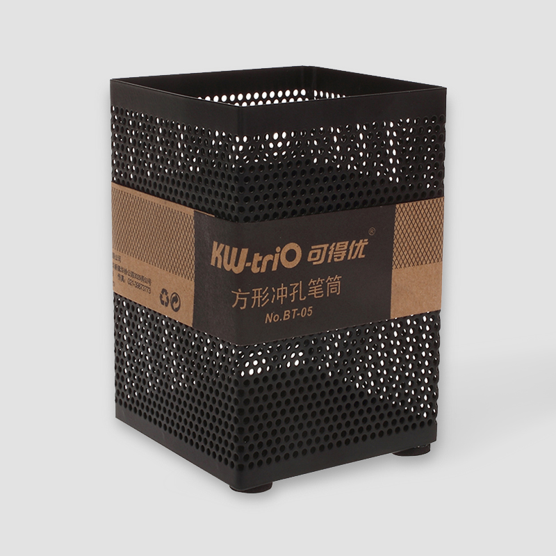 可得優(yōu)方形沖孔金屬筆筒,金屬烤漆材質制作,平滑無毛刺,