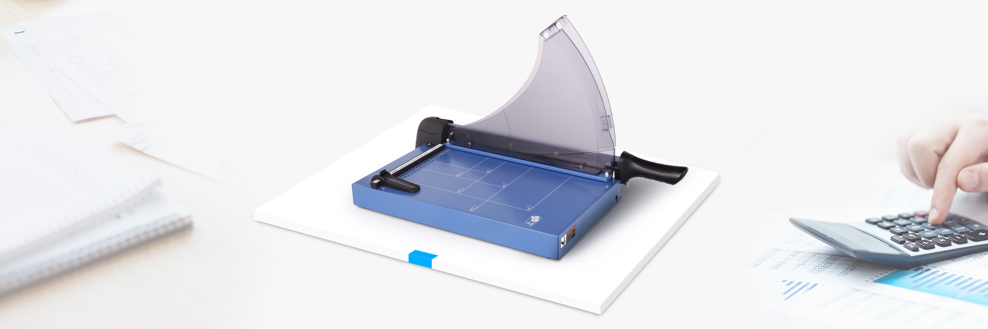 底座為金屬結(jié)構(gòu) 自動壓紙 側(cè)邊帶有安全防護板 有效保護操作安全 鎖刀開關(guān) 操作結(jié)束后鎖定 防止誤操作傷害。