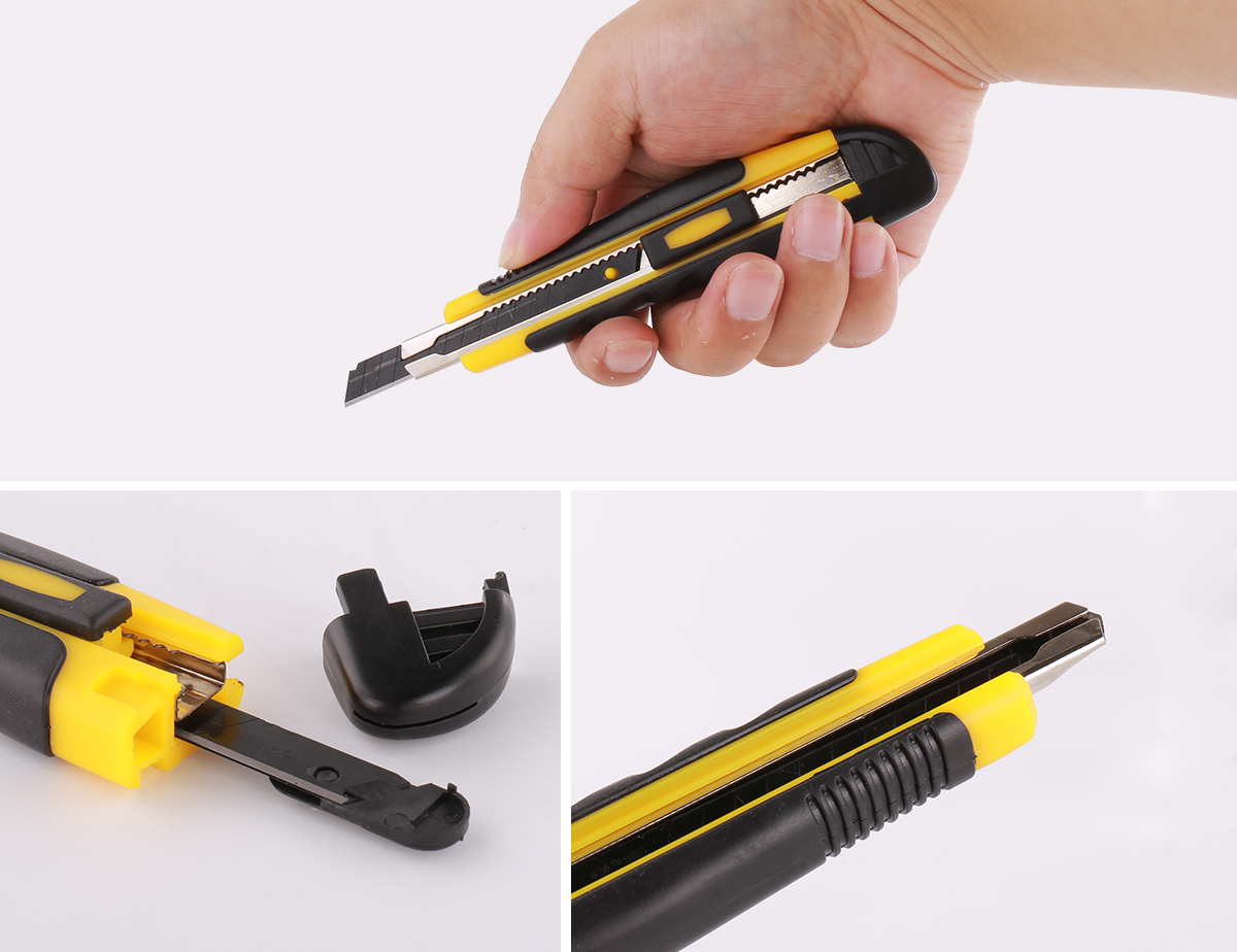 SK5合金黑刃刀片,自動鎖定安全可靠,軟膠塑膠握柄,熱處理刀片,折斷仍鋒利,刀片存儲位。