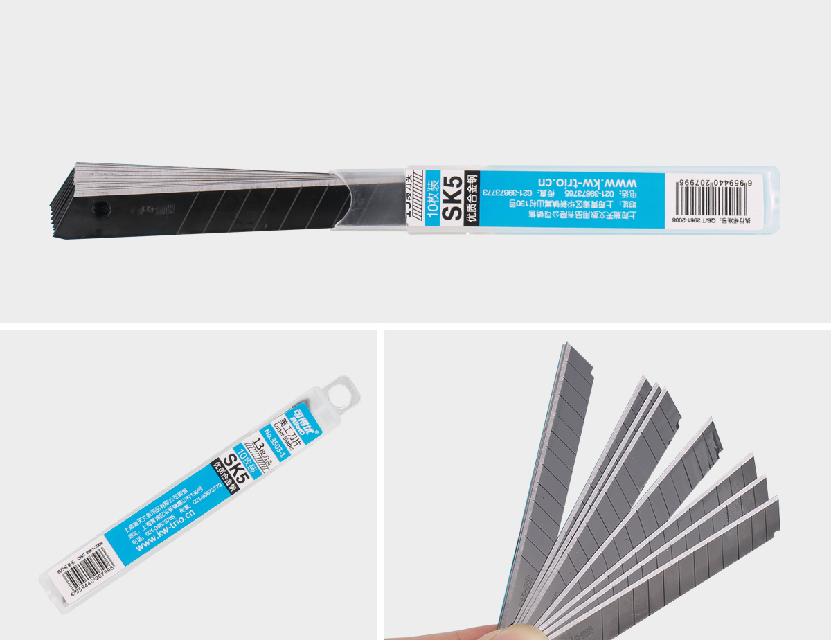 SK5優(yōu)質(zhì)合金鋼黑刃刀片,堅硬耐用,折線工藝方便拆斷鈍化刀刃,刀鋒長,刀刃鋒利