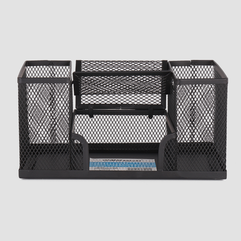 鐵網(wǎng)編織經(jīng)典款 經(jīng)久耐用 名片欄 便簽紙盒、筆筒三合一鐵網(wǎng)文具組。
