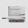 手搖電動(dòng)進(jìn)紙,進(jìn)紙穩(wěn)定,自動(dòng)鎖刀按鈕,方便控制刀芯的使用,安全防護(hù)罩,有效防護(hù)個(gè)人安全,需關(guān)蓋才可裁切。