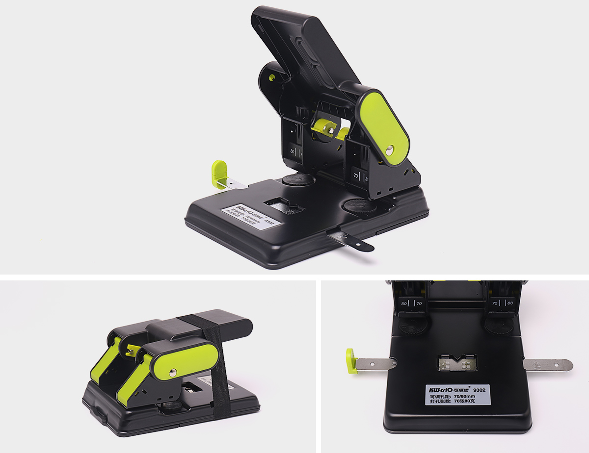 裝訂較其他打孔機(jī)省力60%,強(qiáng)力打孔,打孔間距可以調(diào)節(jié)為70mm或80mm,可更換的空心刀頭。