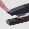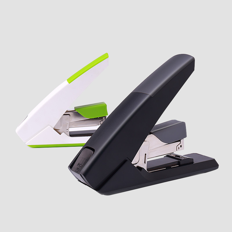 平針收針,節(jié)省30%裝訂后文件厚度,文件更平整。省力50%,高效裝訂。軟膠緩沖設(shè)計(jì),經(jīng)消毒工藝處理,更衛(wèi)生柔軟舒適。前置裝針結(jié)構(gòu),簡單快捷一按一推完成裝針。