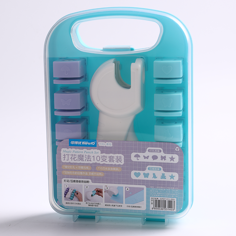 可便捷抽出式替換刀頭的壓花器套組。供10種刀頭款式,5款壓痕+5款鏤空。金屬刀口裁切順滑,方便收納的盒式套裝包裝。